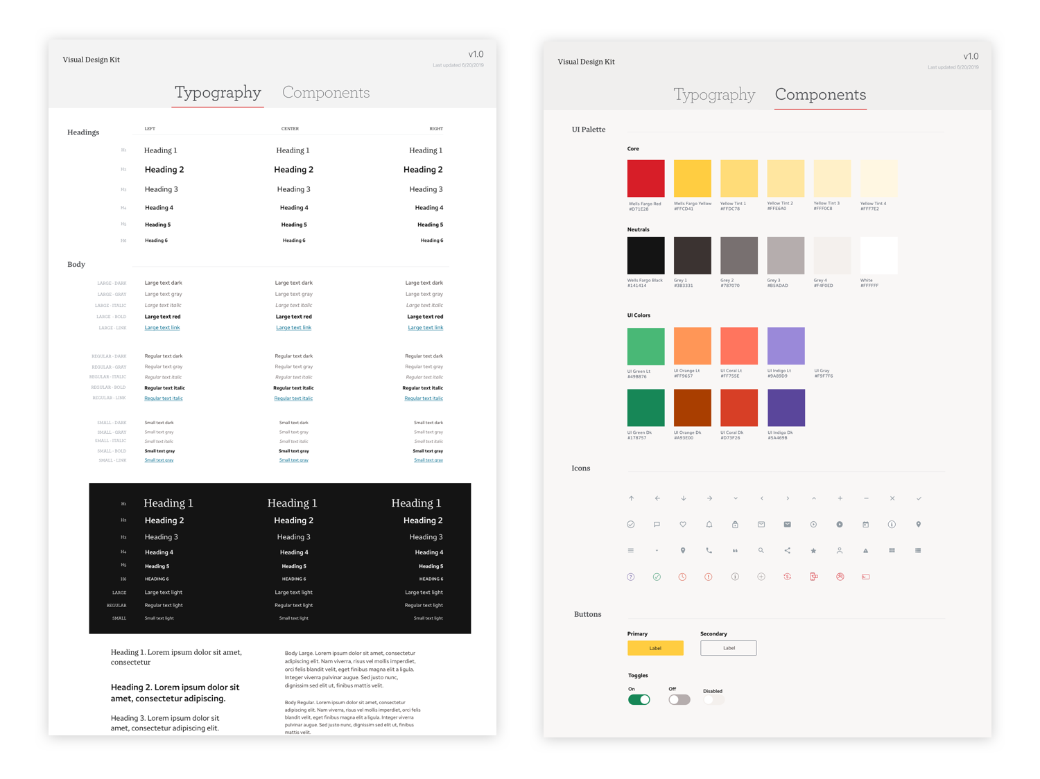 We created and maintained a global system of components, colors, and typography to guide our visual design process, in sketch. At the end of the project, we included this in our final deliverable.
